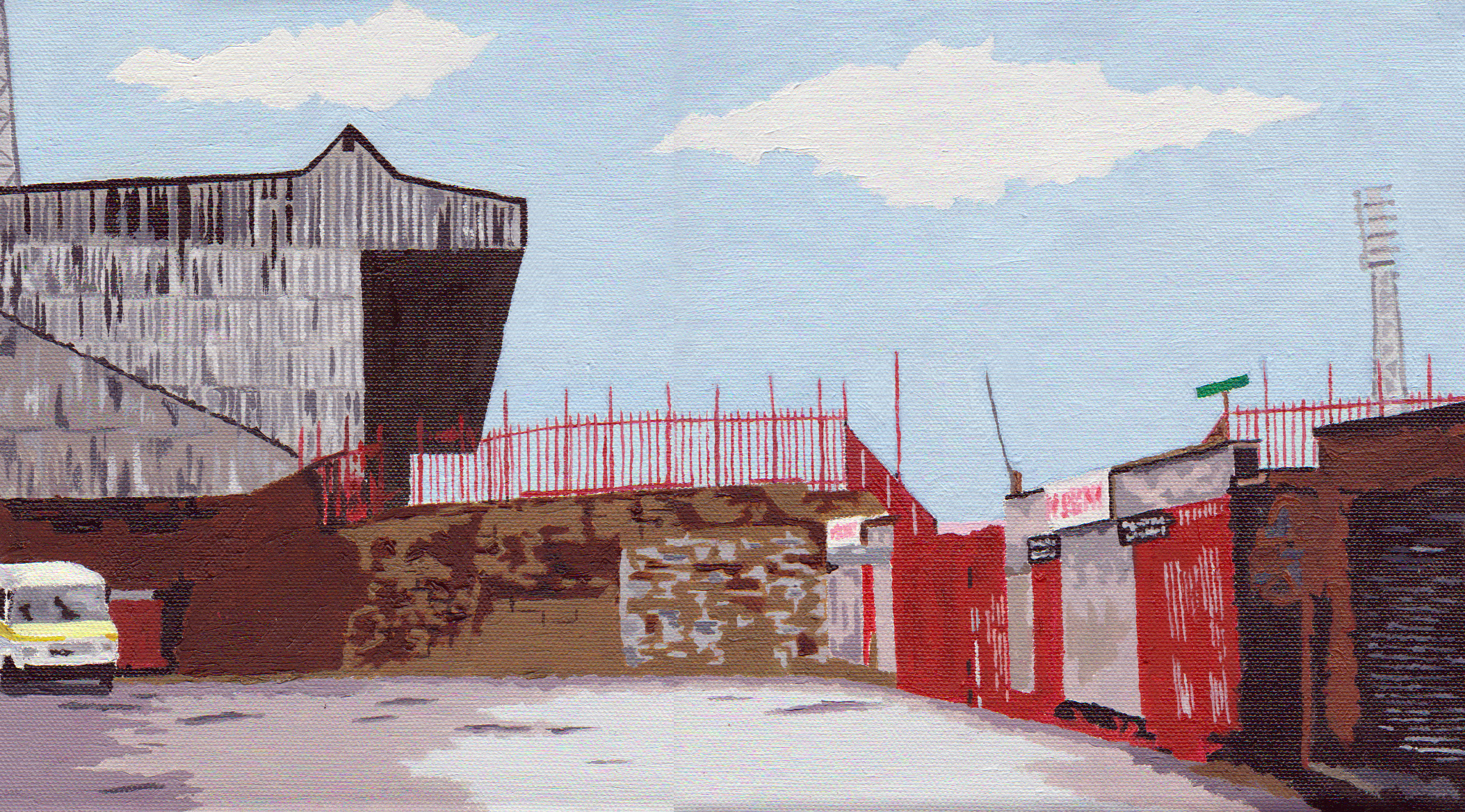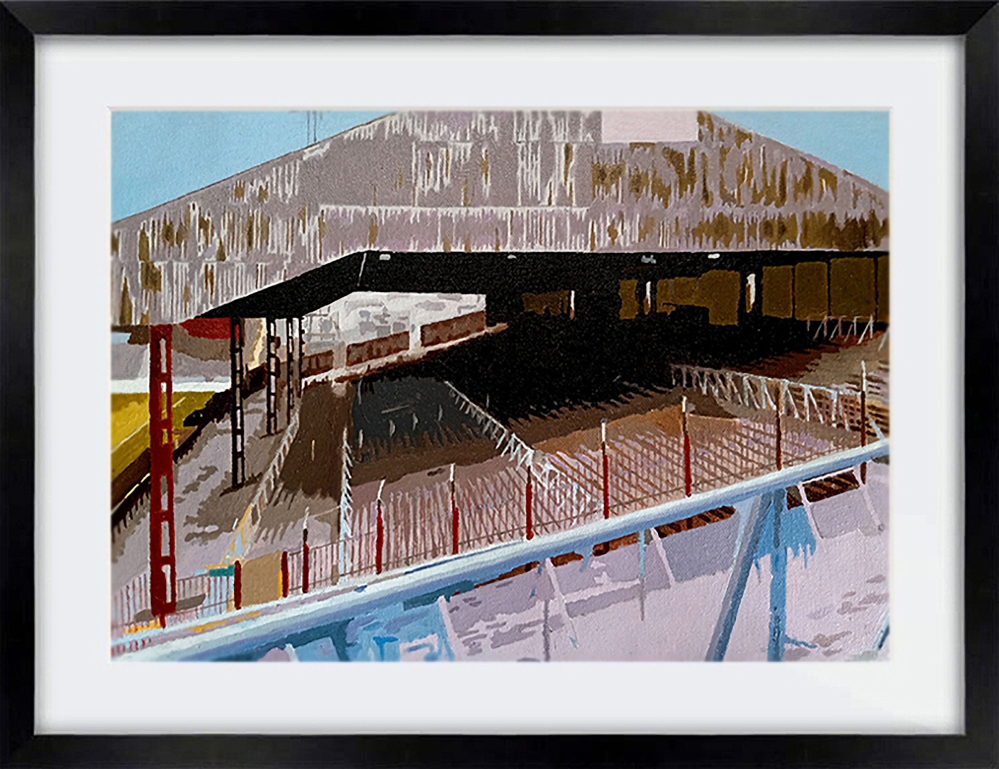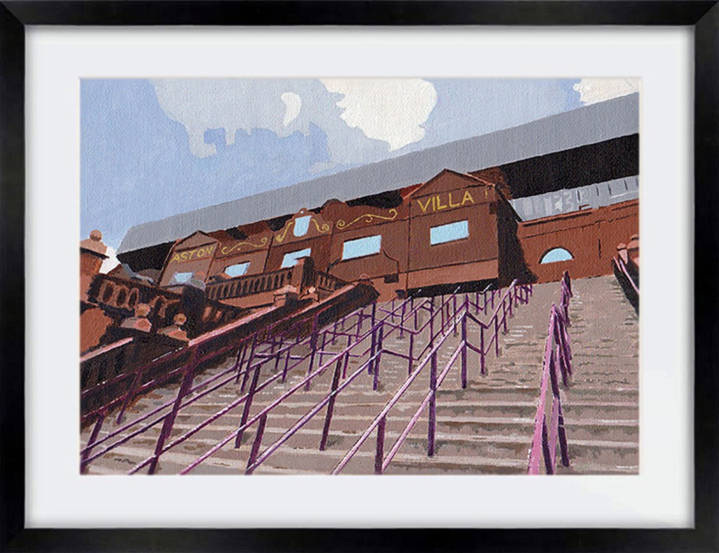The approach to the Holte End at Villa Park. I fancied the challenge of painting that complex pattern of railings, and they certainly tested my patience! SOLD