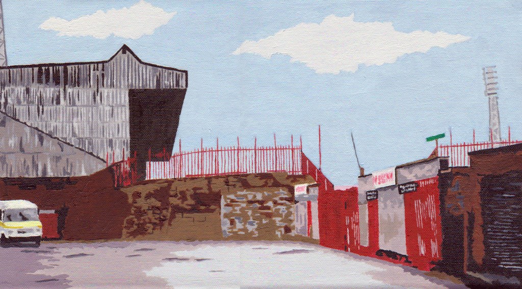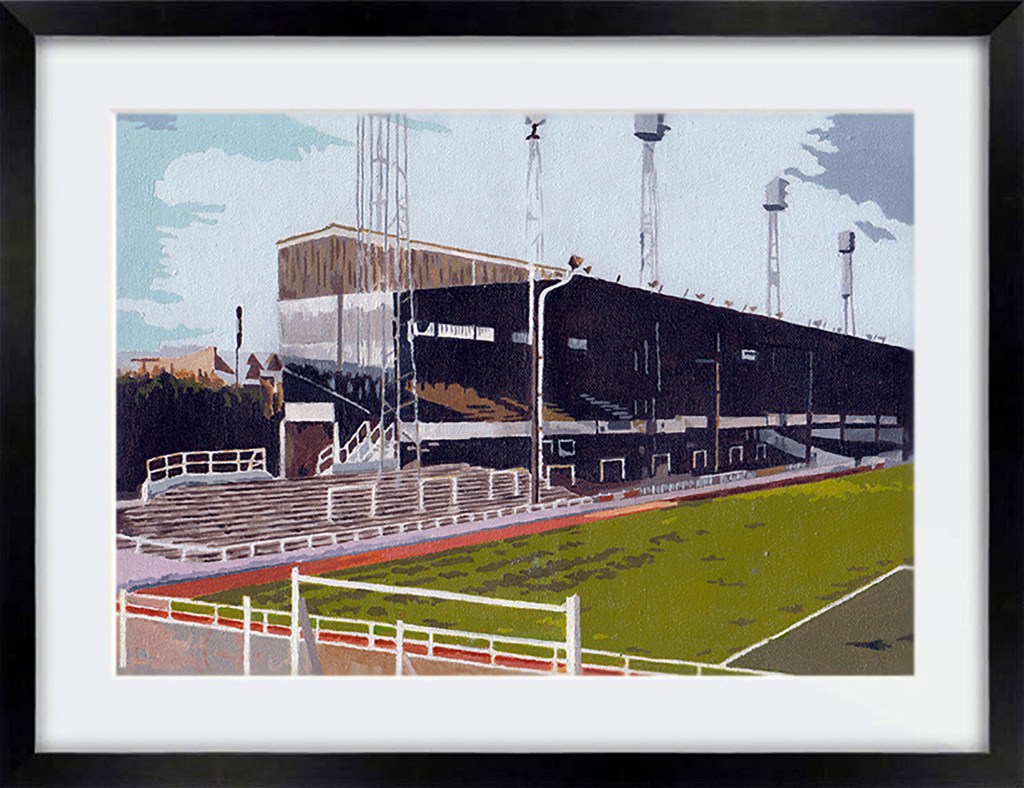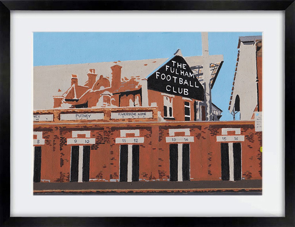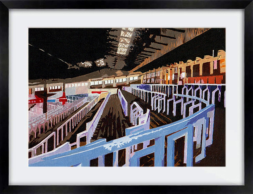 Craven Cottage, home of Fulham FC. Who doesn’t love this bit of the (now modernised) stadium? Original soldElland Road, home of Leeds United. In oils Original soldThe main entrance at Filbert Street, former home of Leicester City. Original soldThe famous Kop at Anfield. In oils. Original soldKenilworth Road, Luton. CommissionA second image of Kenilworth Road. Commission